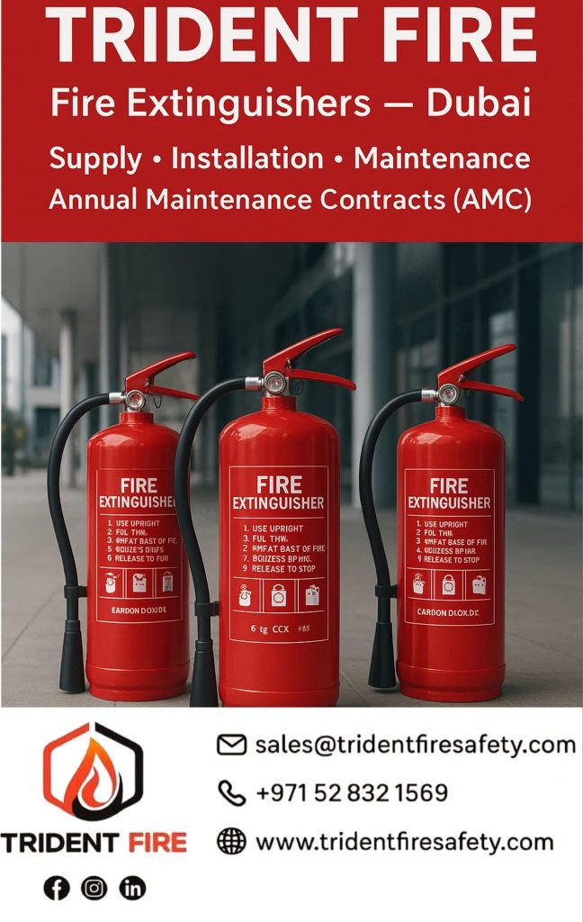 Your trusted partner in Fire Extinguishers – Dubai 🧯 ✅ Supply • Installation • Maintenance ✅ Annual Maintenance Contracts (AMC) Protecting lives & properties with certified fire safety solutions. 🔥 📍 Dubai | #TridentFire ☎️Phone: +971 52 832 1569 📩Email: sales@tridentfiresafety.com 🌐Website: www.tridentfiresafety.com #FireExtinguishersDubai #TridentFire #FireSafetyDubai #FireFighting #FireProtection #DubaiBusiness #DCDApproved #SafetyFirst #FireExtinguisherSupply #FireExtinguisherMaintenance #FireSafetySolutions #EmergencyPreparedness […]